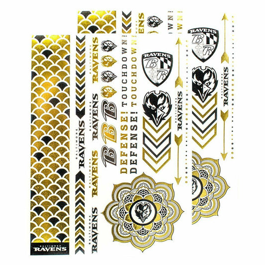 LE NFL Baltimore Ravens Temporary Metallic Foil Tattoos Body Jewelry 2 Sheet