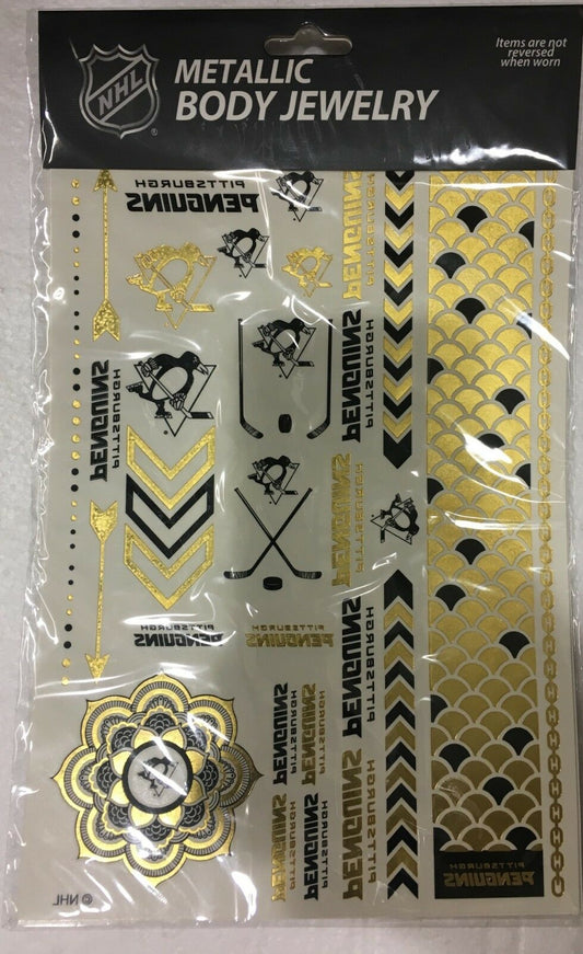 Little Earth NHL Pittsburgh Penguins Temporary Foil Tattoos 2 Sheets