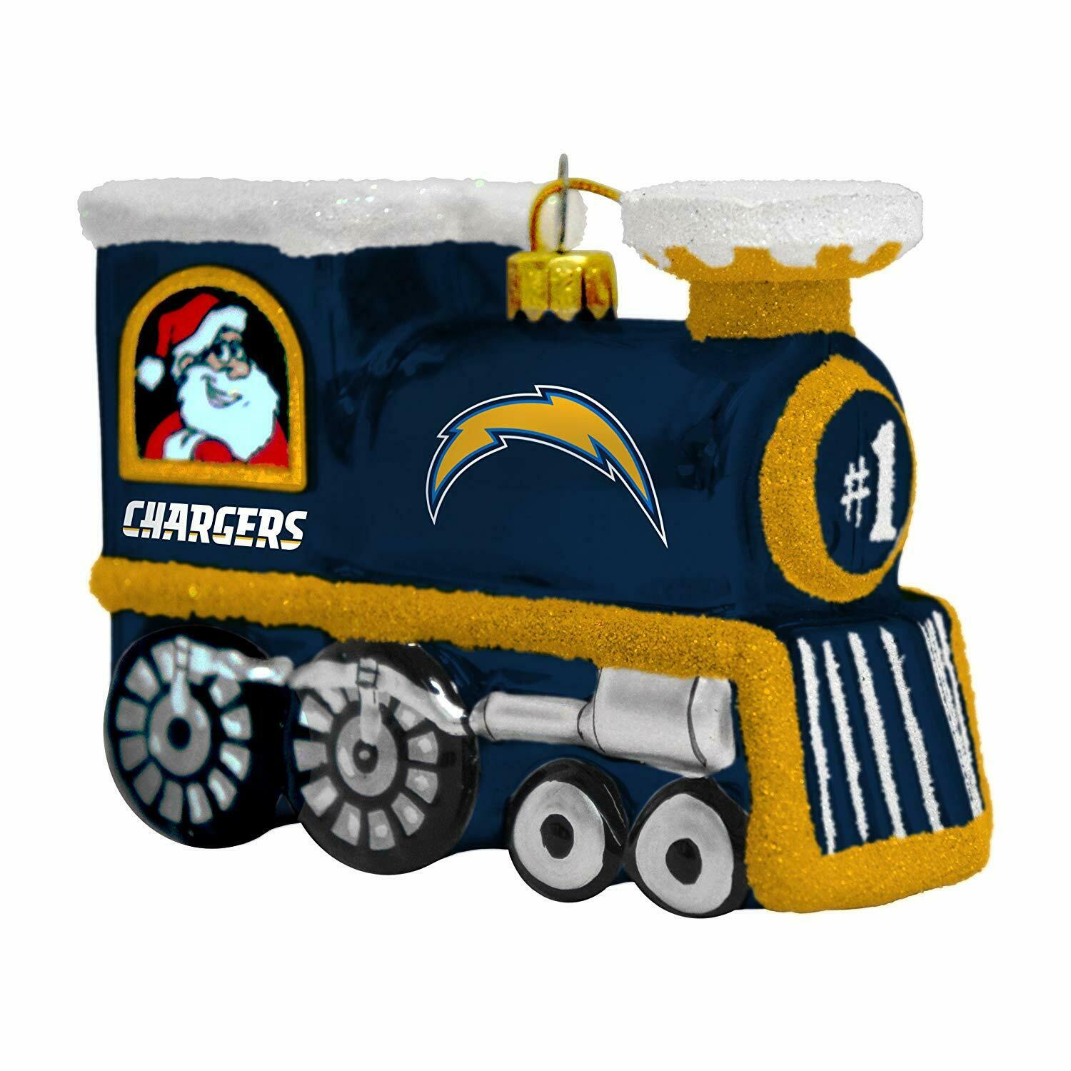 Topperscot NFL Los Angeles Chargers Blown Glass Train Santa Clause & Rudolph Ornament