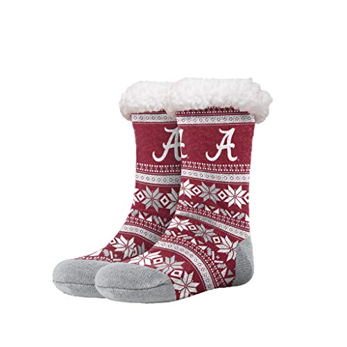 FOCO NCAA Licensed Alabama Crimson Tide Fair Isle Footy Slippers Non-Skid Bottom