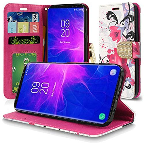 GSA Bling Clasp Flip Wallet Case for Samsung Galaxy Note 9 - Purple Lily