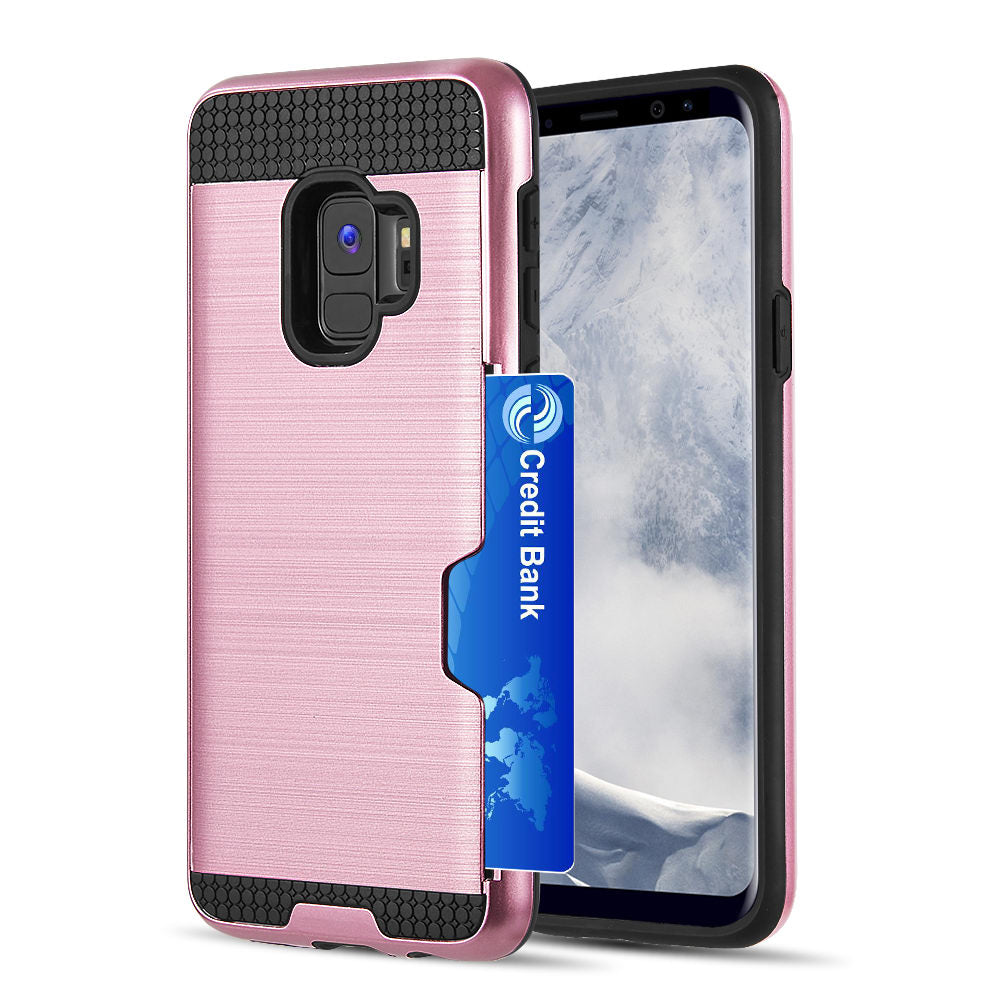 GSA Brushed Hybrid Case w/Credit Card Holder for Samsung Galaxy S9 - Rose Gold