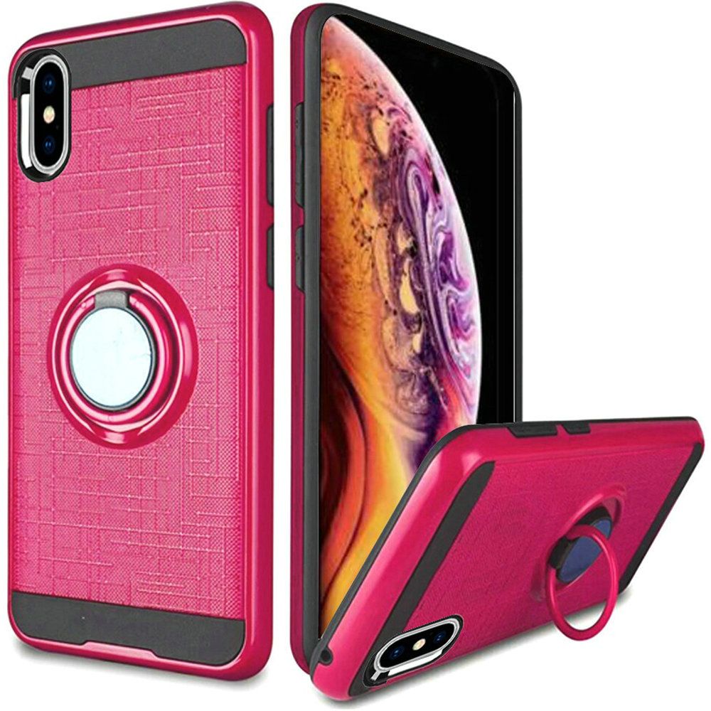GSA Brushed Matte Ring Stand Hybrid Case For iPhone XS Max (6.5") Hot Pink/Black