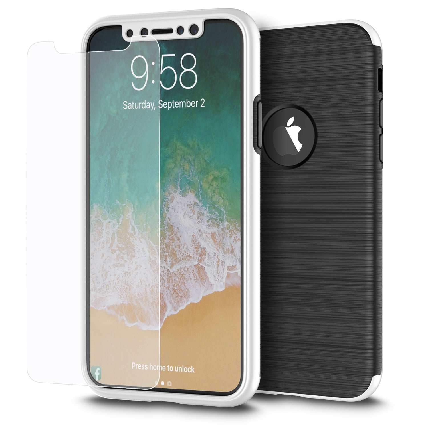 GSA Capsule Hybrid Case W/PC Frame & Tempered Glass For iPhone X, XS (5.8") Silver