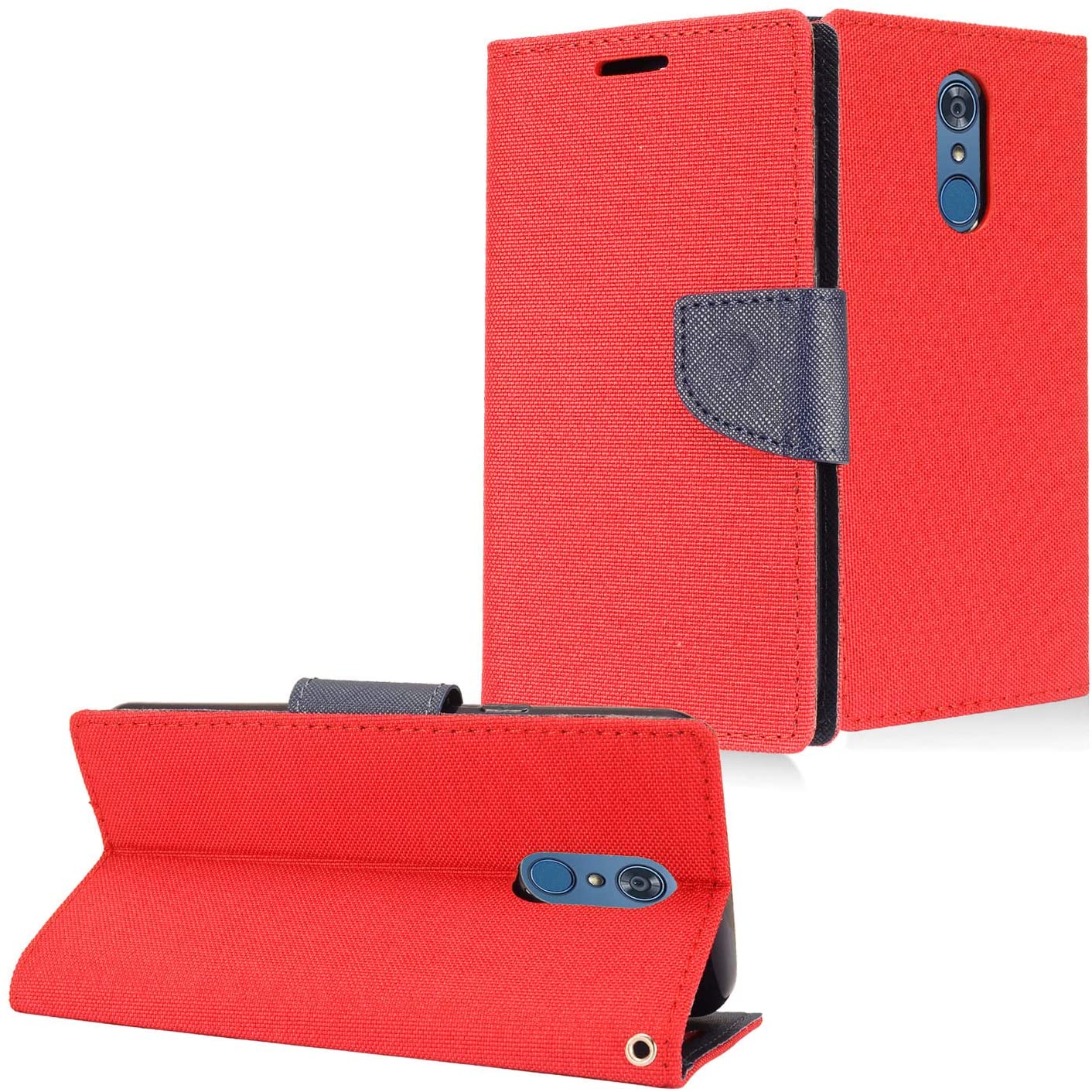 GSA Denim Fabric Flip Wallet Case for LG Q7, Q7 Plus Red