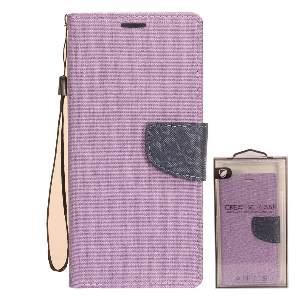 GSA Denim Two-Tone Flip Wallet Case for Alcatel 3V (2019) - Purple/Gray
