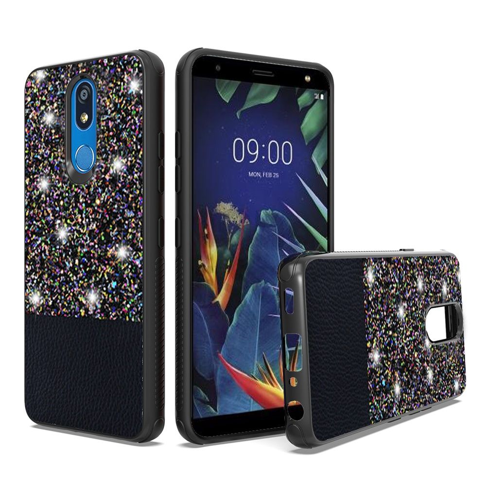 GSA Glitter Hybrid Shockproof Case Cover - Black - For LG K40,For LG Harmony 3,For LG Xpression Plus 2 (2019),For LG Solo