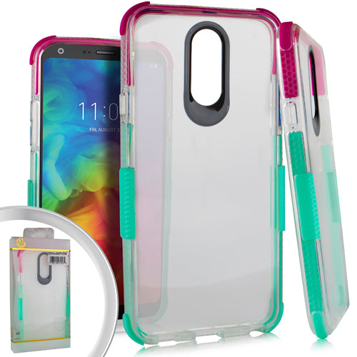 GSA Hybrid Bumper Side Spine 2 Case for LG Q7 Plus Q7 Hot Pink & Teal