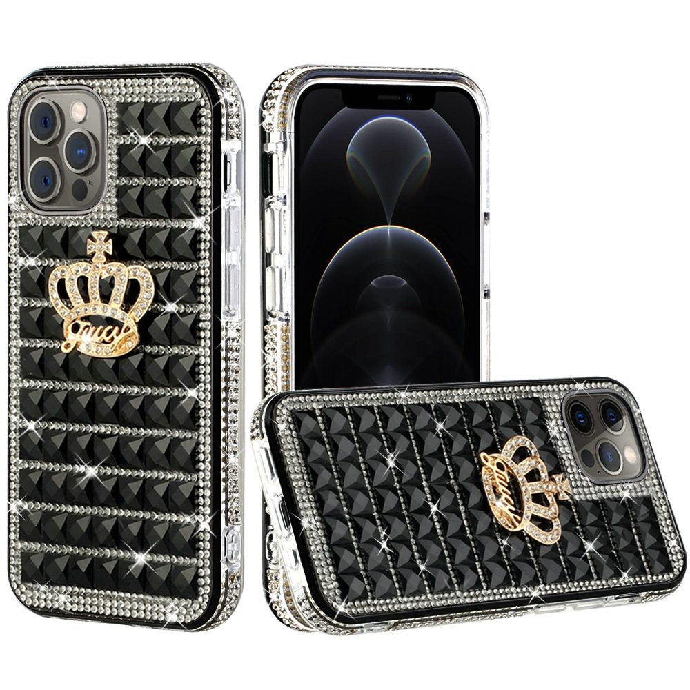 GSA KAD Stone Crown Bling Hybrid Case For iPhone SE (2020), (2022), 8 & 7 (4.7") - Black