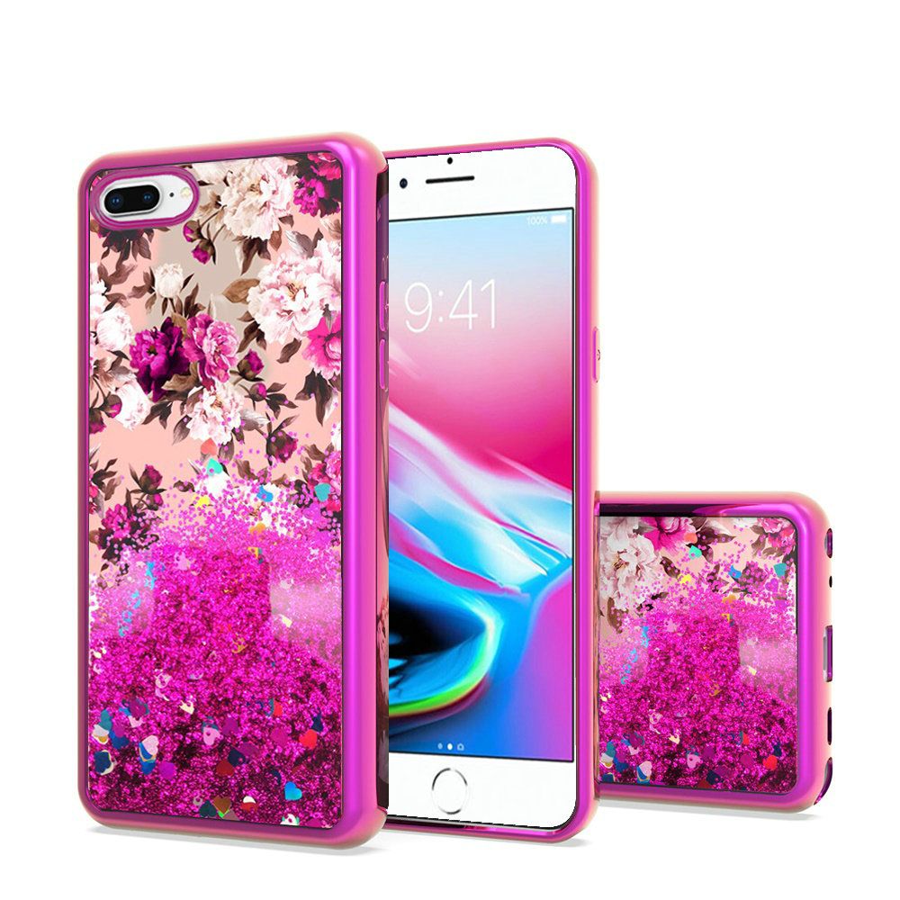 GSA Liquid Glitter Roses Case For iPhone 8 Plus, 7 Plus & 6S Plus (5.5") Hot Pink