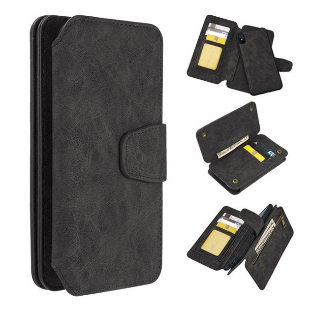 GSA Luxury Leather Flip Wallet Case For iPhone XS Max (6.5") - Black