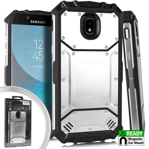GSA Screw Metal Jacket Hybrid Case For Samsung Galaxy J3 (2018), J337, J3 V 3rd Gen, J3 Star, J3 Achieve, Express Prime 3 - Silver/Black
