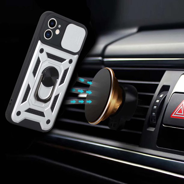 GSA Slim Camera Cover Ring Stand Hybrid Case For iPhone 13 Pro Max - Silver