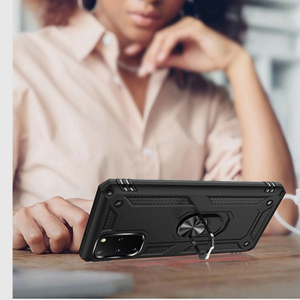 GSA Slim Shockproof Case Ring Stand for Samsung Galaxy S20 Plus - Black