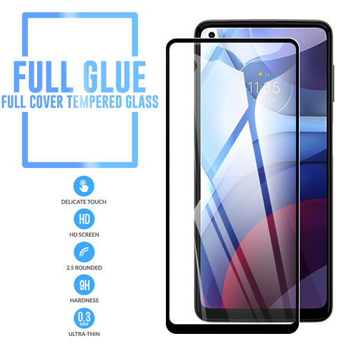 GSA Tempered Glass w/Black Border For Motorola Moto G Power 2021 Full Glue, Full Cover, Black Border Pack of Two Glass