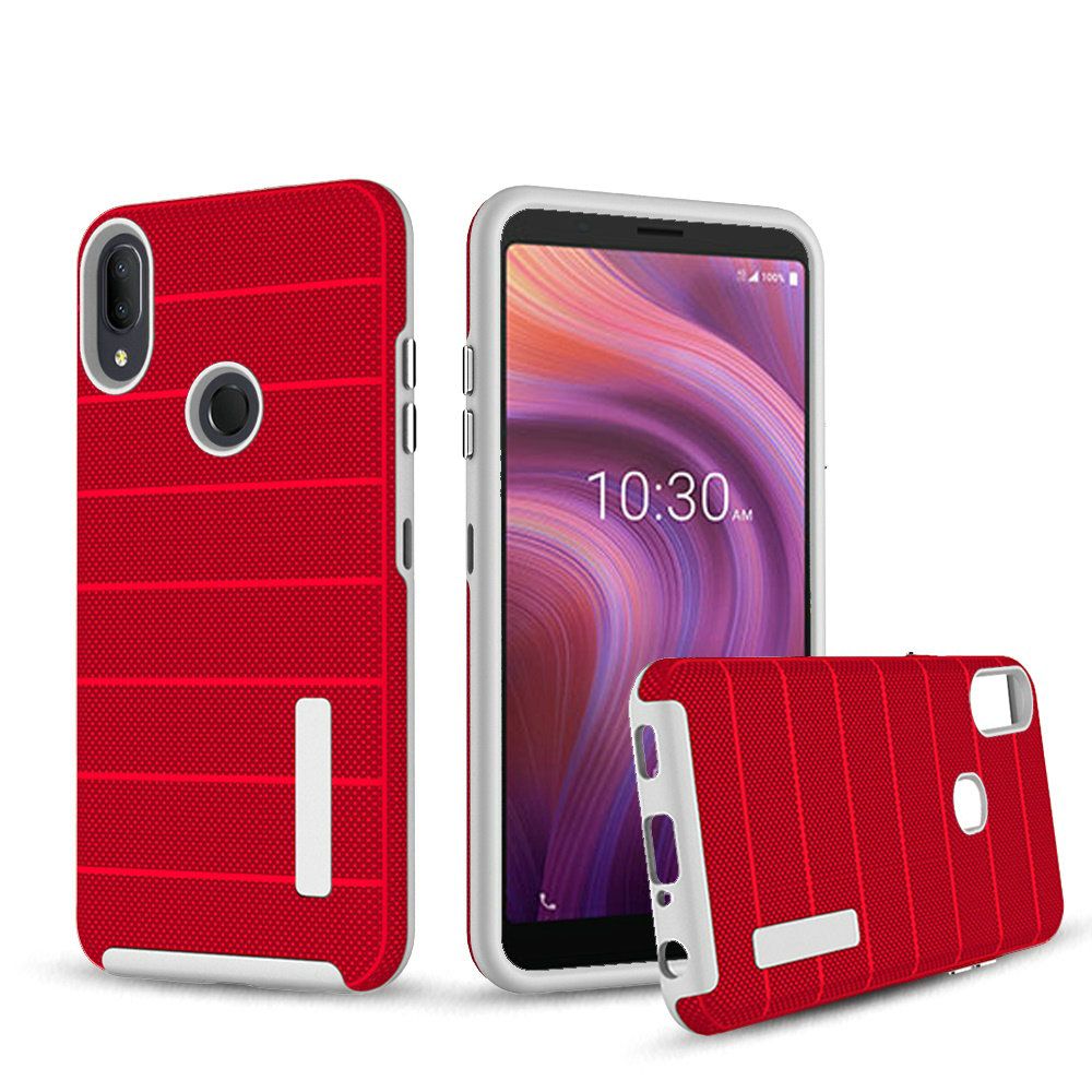 GSA Textured Stripe Shockproof Hybrid Case for Alcatel 3V (2019) - Red/Silver