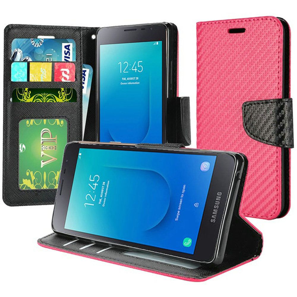 GSA Two-Tone Carbon Flip Wallet Case For Samsung Galaxy J2 Core - Hot Pink/Black