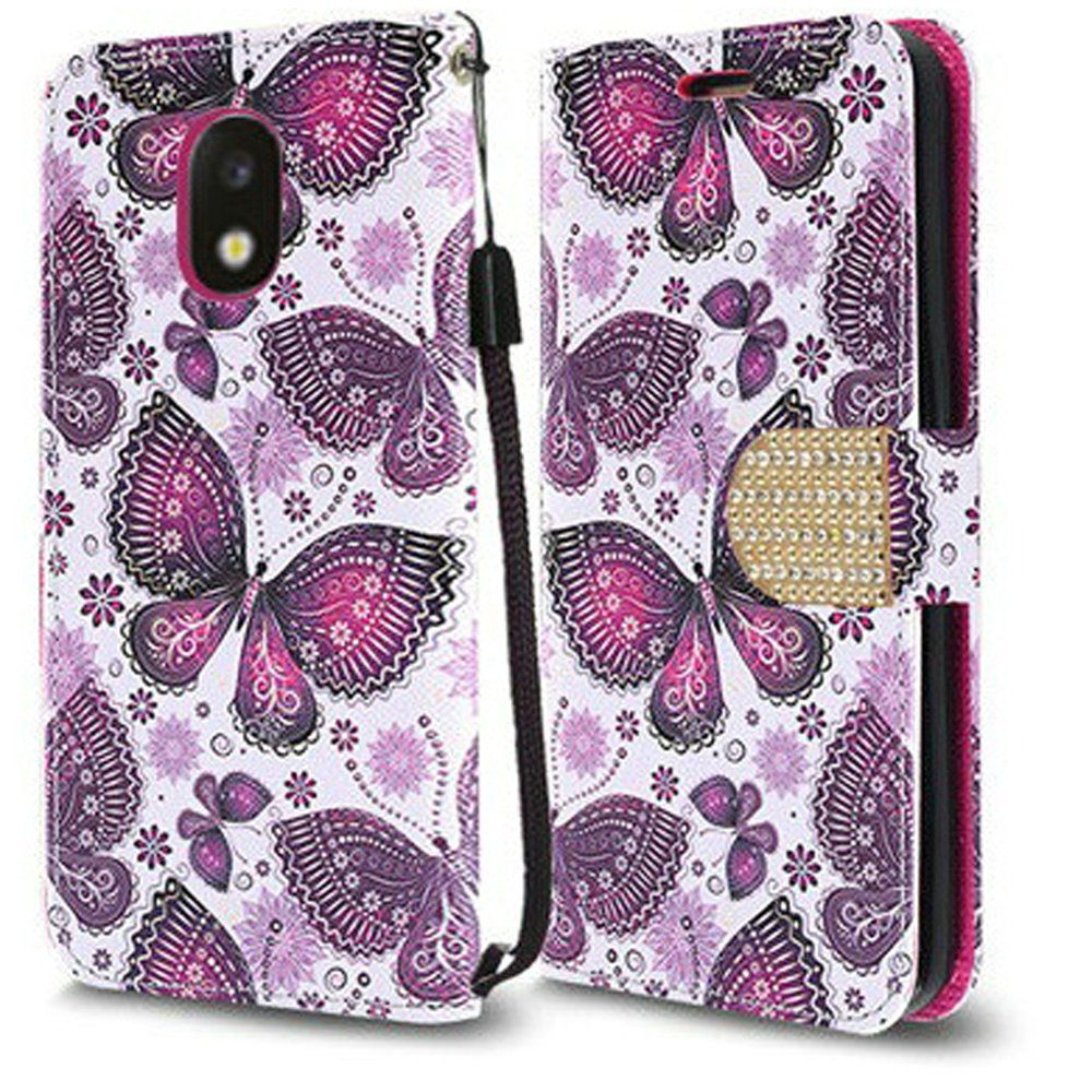 GSA Violet Butterfly Flip Wallet Case For Samsung Galaxy J3 (2018), J337, J3 Star, J3 Achieve & Express Purple